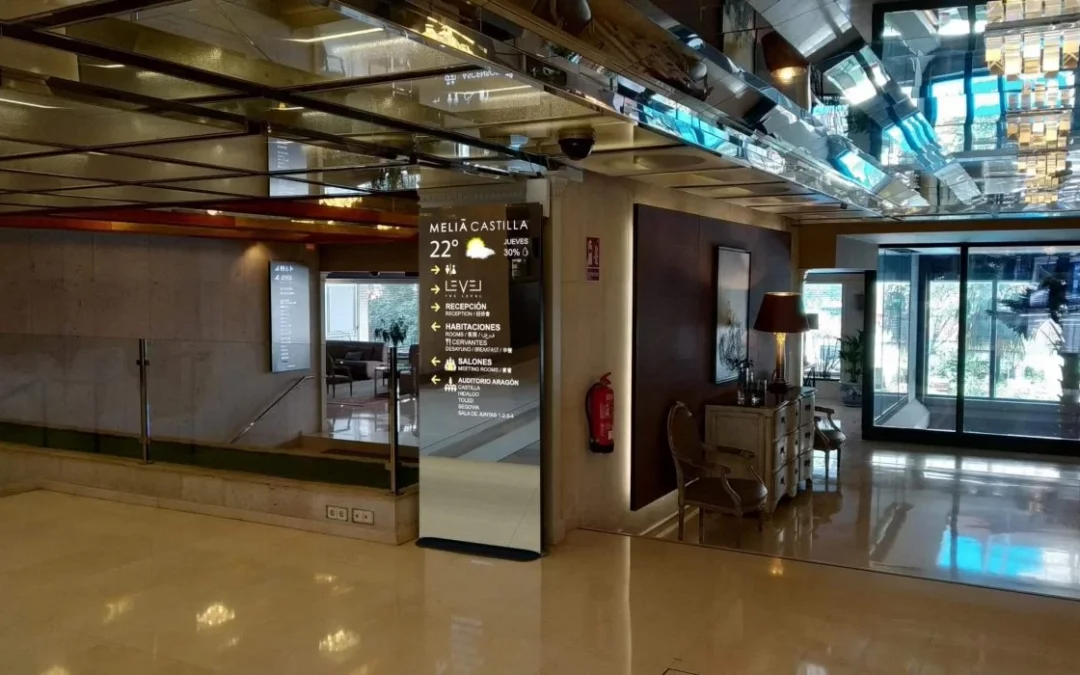 En pasillos, ascensores o salas de reuniones, la señalización digital guía al cliente y refuerza la percepción de orden y profesionalidad.