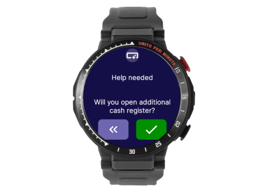 Esta acción activa automáticamente una notificación que llega al reloj inteligente o dispositivo móvil del experto de la tienda, permitiendo que el personal responda de forma inmediata.